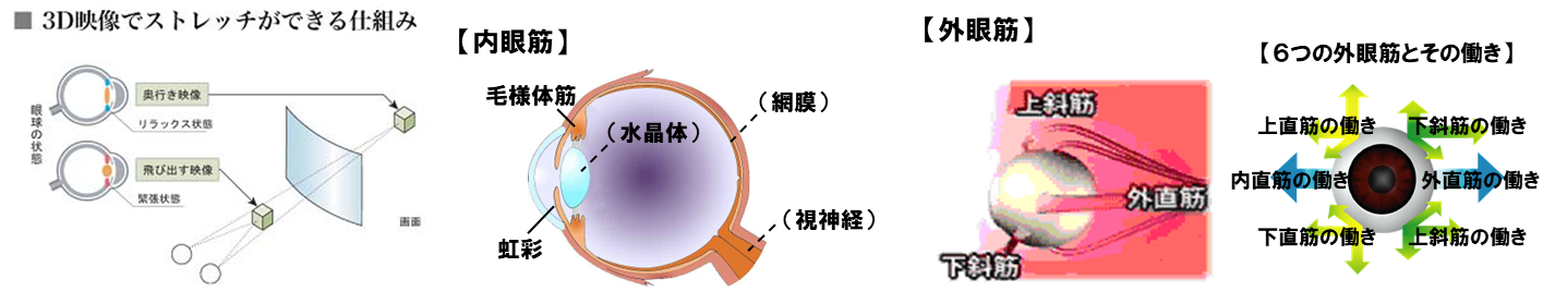 特許技術の立体映像を眺めるだけで全ての内眼筋と外眼筋をストレッチします。